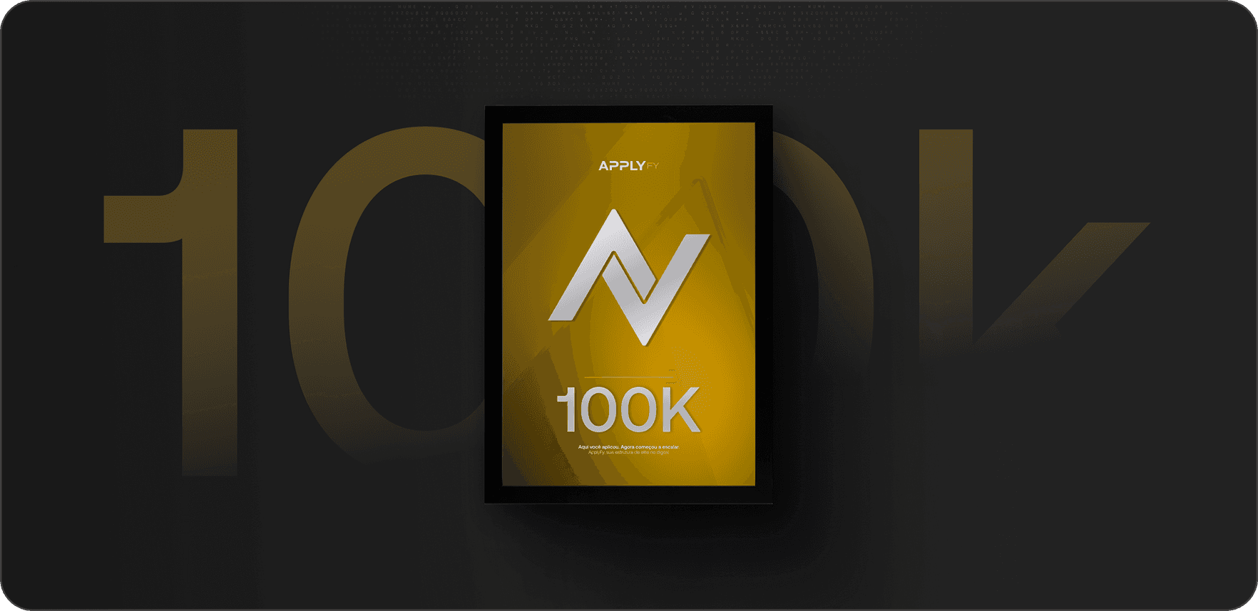 Reconhecimento oficial pra quem chegou nos 100K com consistência e um kit premium Applyfy pra selar o marco.